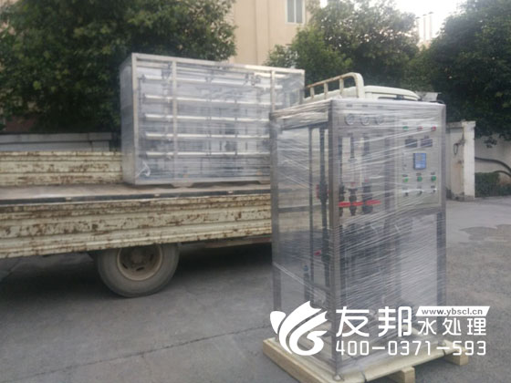兩套小型純凈水設備齊發貨,在鄭州友邦工廠里正在裝車的是發往洛陽地區的1噸反滲透設備和1噸EDI超純水設備,今天友邦小編就來給大家講解一下關于反滲透設備和EDI超純水設備