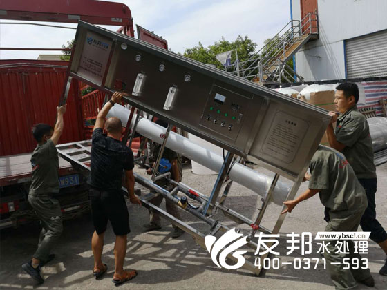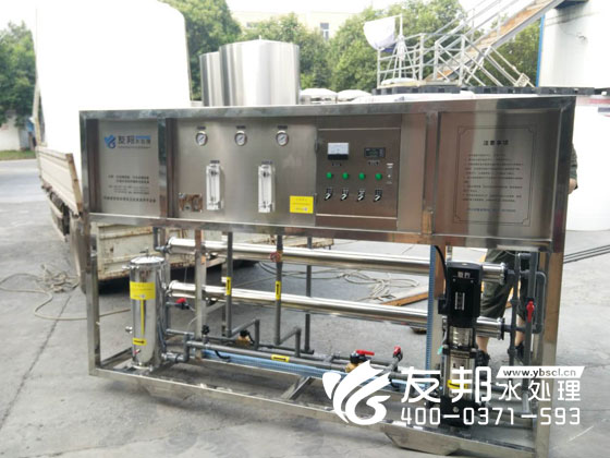 這套5t/h反滲透純凈水設備是發往鄭州西郊地區用作工業生產用水,設備工藝方案是友邦根據用戶要求,以系統運行可靠、經濟合理為原則,采用相關設計標準和規范,結合我公司多年工